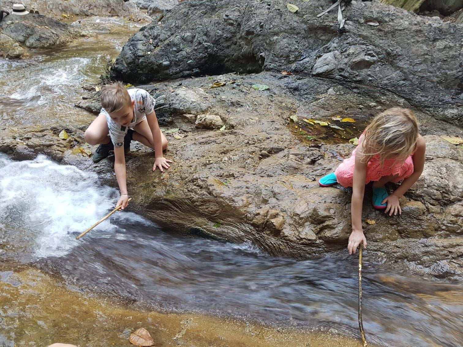 In de middag maken wij een super mooie wandeltocht door een rivier die zich door het regenwoud kronkelt. Wij klimmen over rotsen, zwemmen in natuurlijke pools, bouwen dammetjes en bewonderen de watervallen. Samen met onze nieuwe vrienden van Alouatta genieten wij van het Karen Morgansen nature reserve.
