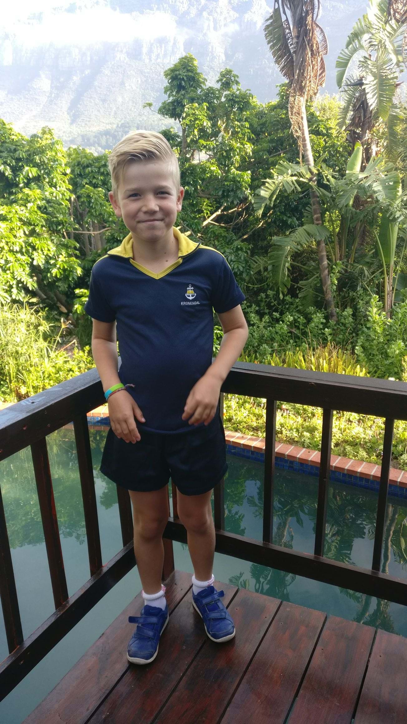 Vanaf vandaag mag Timon ook naar school! Kronendal ! Hij heeft er veel zin in! Eindelijk vrienden maken! Maar eerst… Schooluniform kopen :-) Één voor schooldagen Één voor schooldagen als hij sportles heeft Één voor in het zwembad Dat is toch heel anders dan in Nederland!