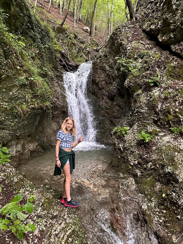 Na een rustig relaxt ochtendje met veel wolken en regenbuien stappen wij in de auto richting lake Bled om de regen een beetje te ontsnappen… halverwege hebben we genoeg van alle haarspeldbochten en zoeken we een leuke plek om nog een kleine wandeling te maken. Aangekomen bij de waterval blijkt het water niet alleen uit de waterval te stromen… kleine wolkbreuk- schuilen heeft geen nut, dan maar nat laten regenen…. Op de terugweg stapt michel bijna op een slang! 🐍